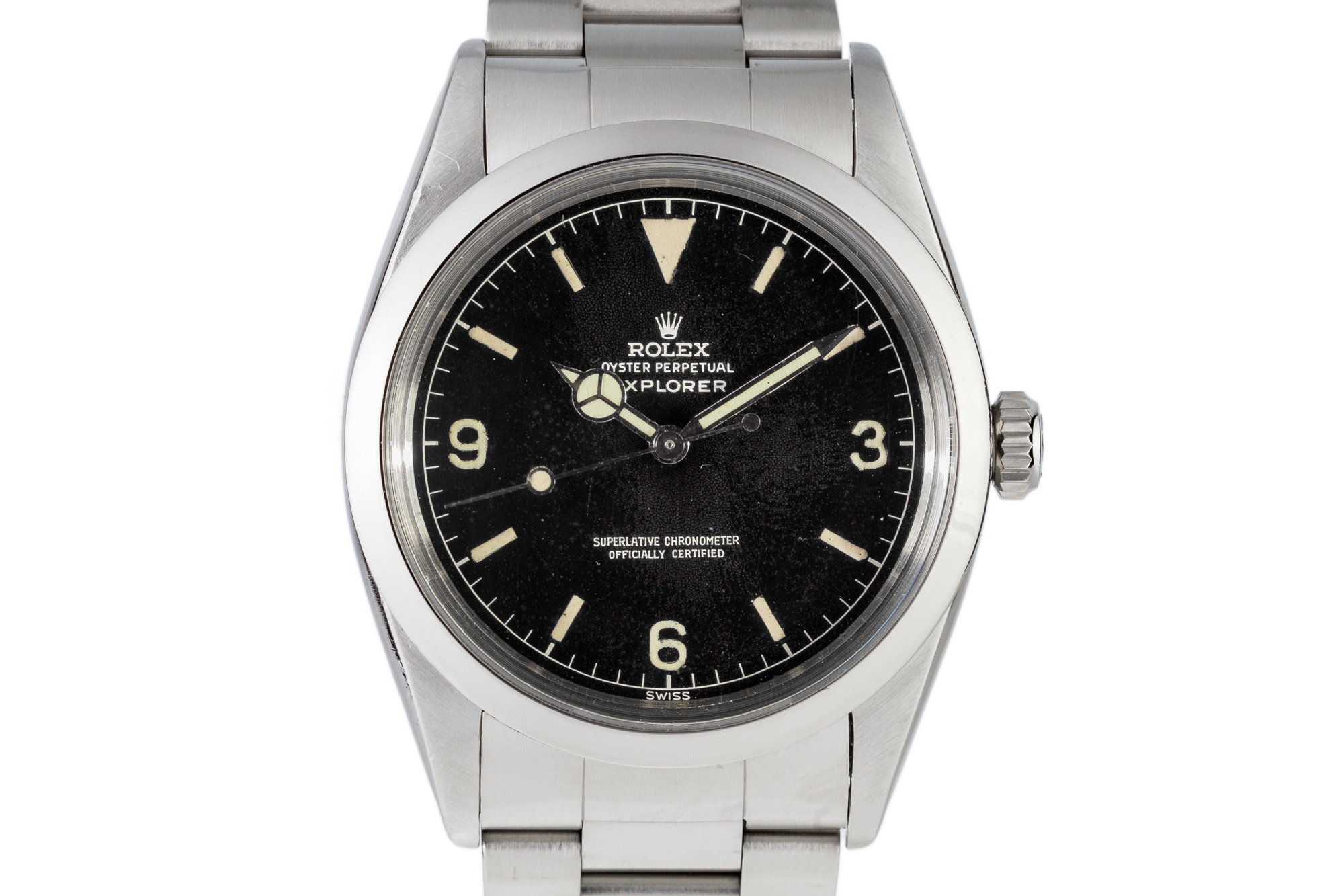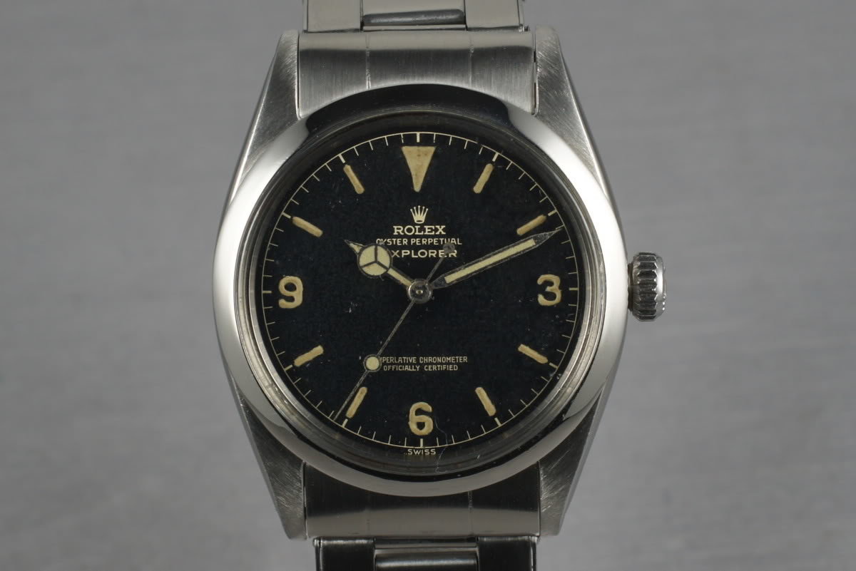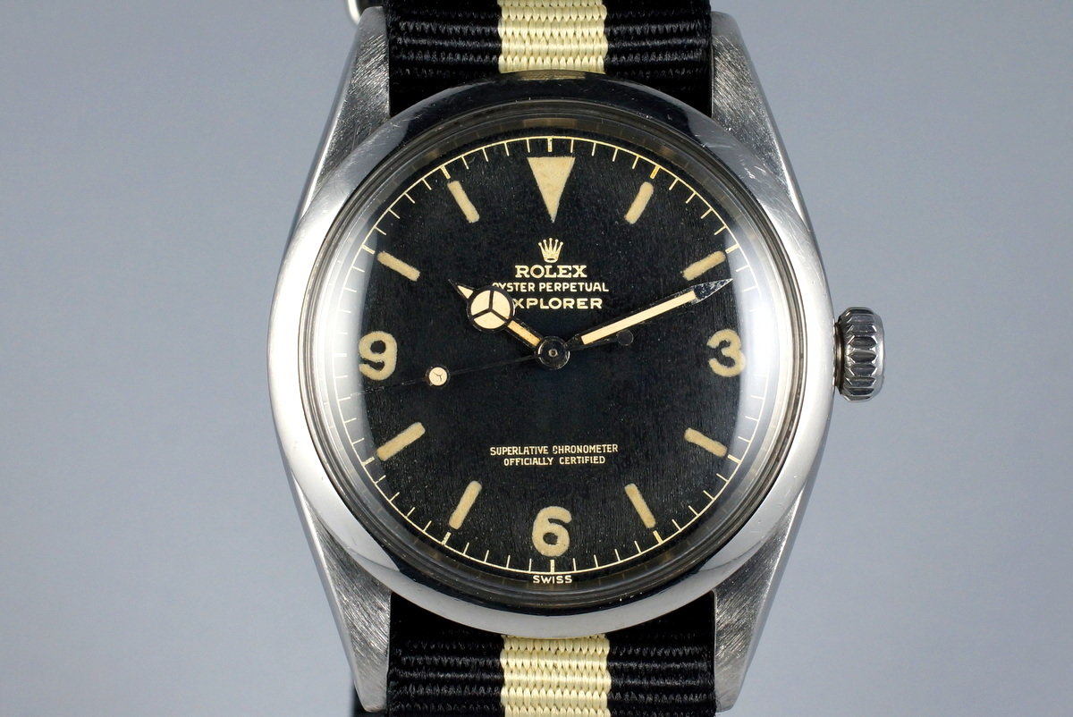 This dial, along with the other chapter ring variations, are the first of the 1016 dials with the “superlative chronometer / officially certified” or ‘SCOC’ text that is seen on all 1016’s except for the transitional OCC dial. The SCOC designated the movement to the newer 15xx base calibre for Rolex that came with the microstella adjustment.