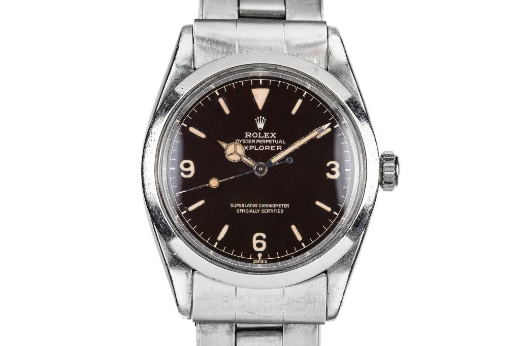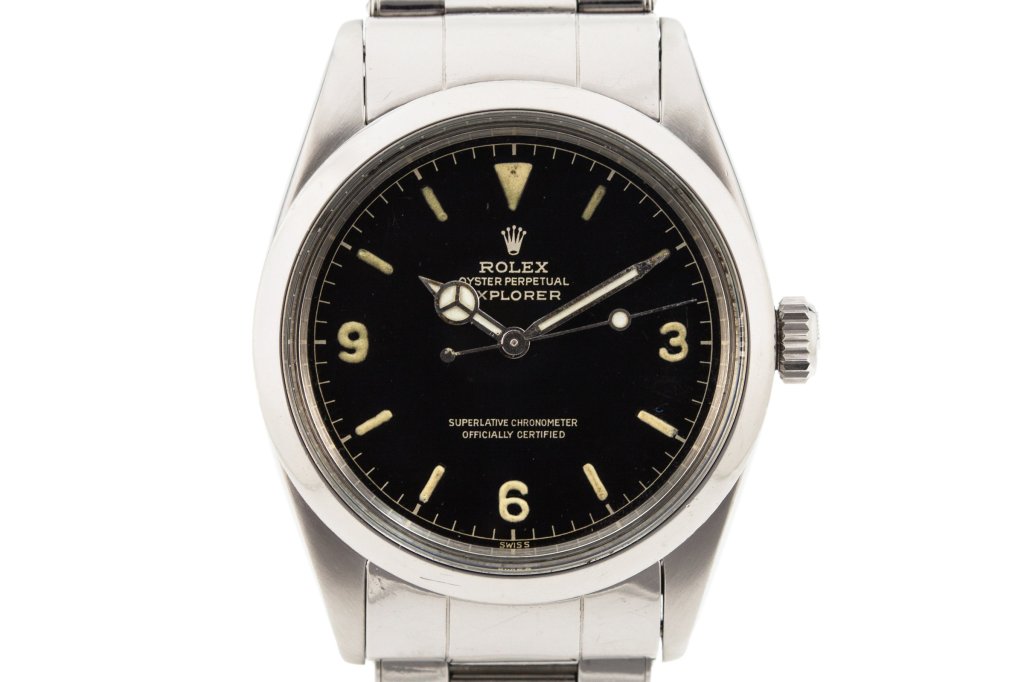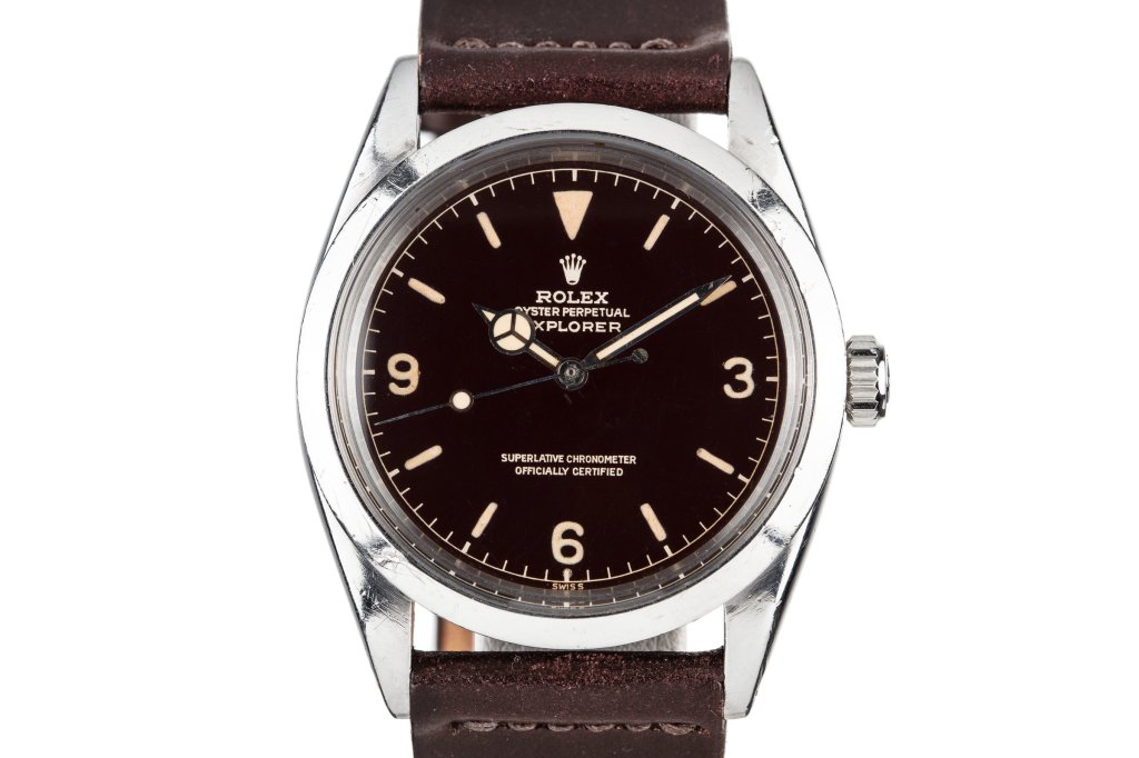 As mentioned on the Type 1 page, all three types of 1016 chapter ring SCOC dials appear to start at the 516xxx serial range, which is the same as that of the OCC dials. Whereas the Type 1 serial range is limited to an upper end of 596xxx, the Type 3 extends to the 105xxxx range. As such, dials in the 6-9xxxxx range are seen with exclamation points (colloquial for the small dot of lume below the 6 o’clock lume because it looks like the bottom of an exclamation point on Submariners, where the lume plot is rectangular) and/or underlines.